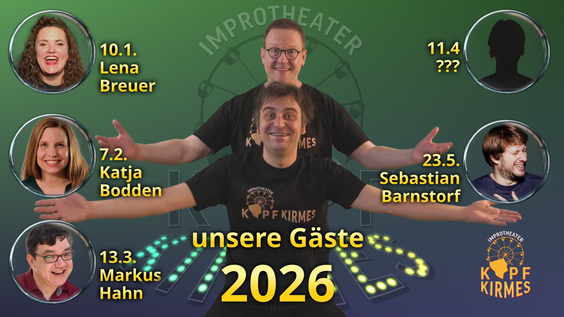 Neben Stammpublikum - tatsächlich Menschen, die regelmäßig bis immer(! ... na gut, fast) unsere Shows besuchen - begrüßen wir in jeder Vorstellung Besucher, die zum ersten Mal Improtheater sehen. Und das ergibt jedes mal eine Bombenstimmung!